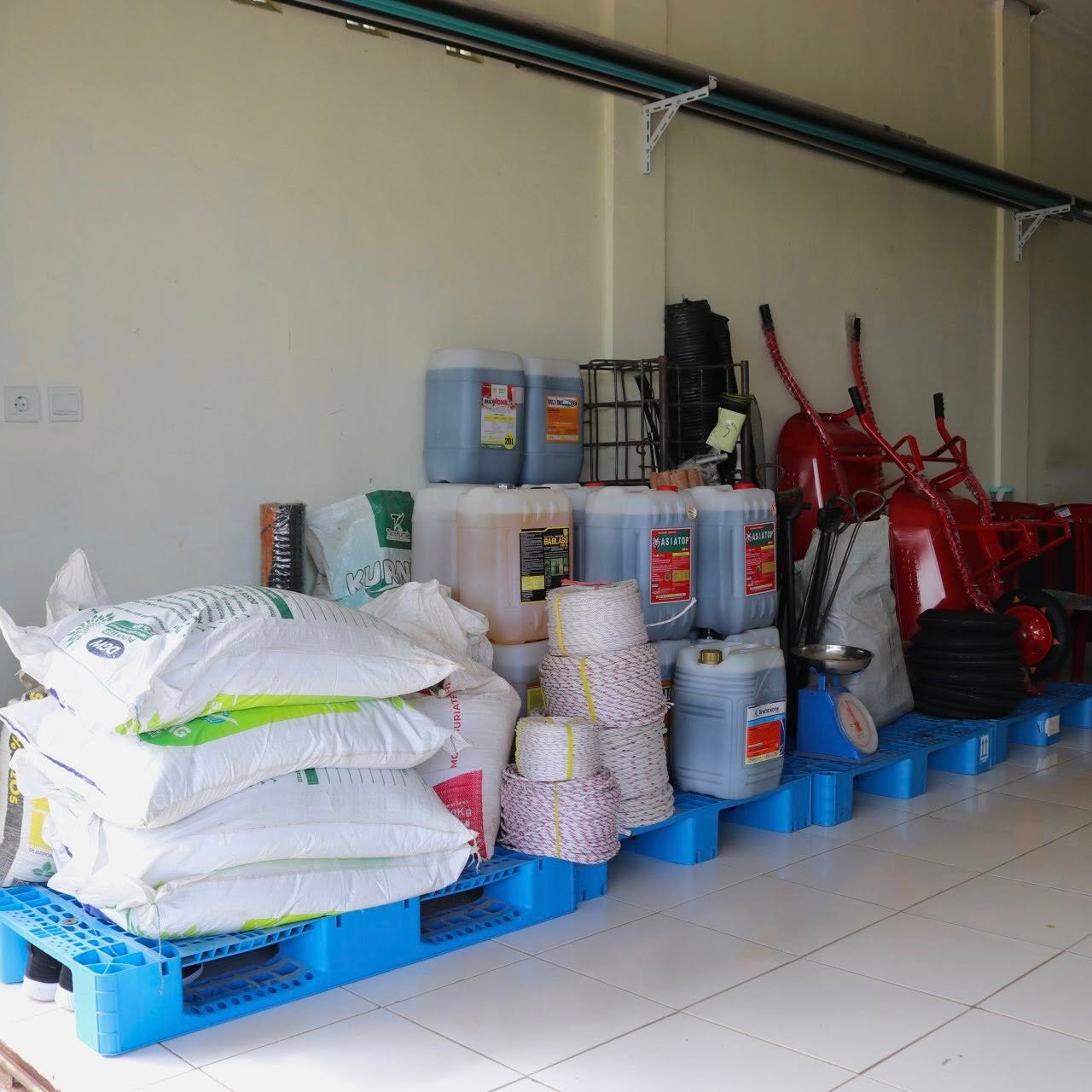 Selain alat-alat panen kami juga menyediakan peralatan pertanian seperti halnya angkong, sepatu boot, mulsa, alat semprot manual dan otomatis dan alat alat pertanian lainnya. walaupun sebagian besar masyarakat adalah petani sawit namun kebutuhan alat – alat pertanian ini sangat di butuhkan di kalangan masyarat desa sebagai penunjang keselamatan dan kemudahan dalam perawatan hingga pemanenan kebun sawit ataupun ladang lainnya yang mereka miliki.